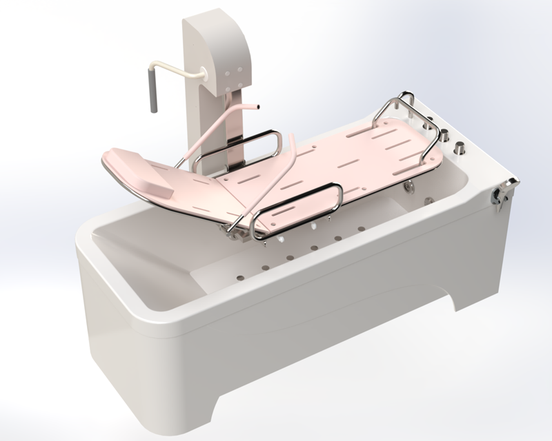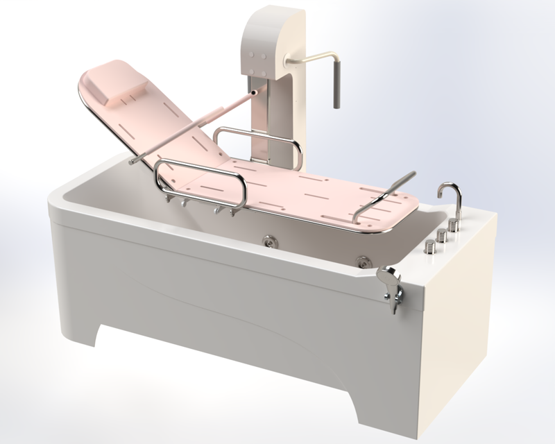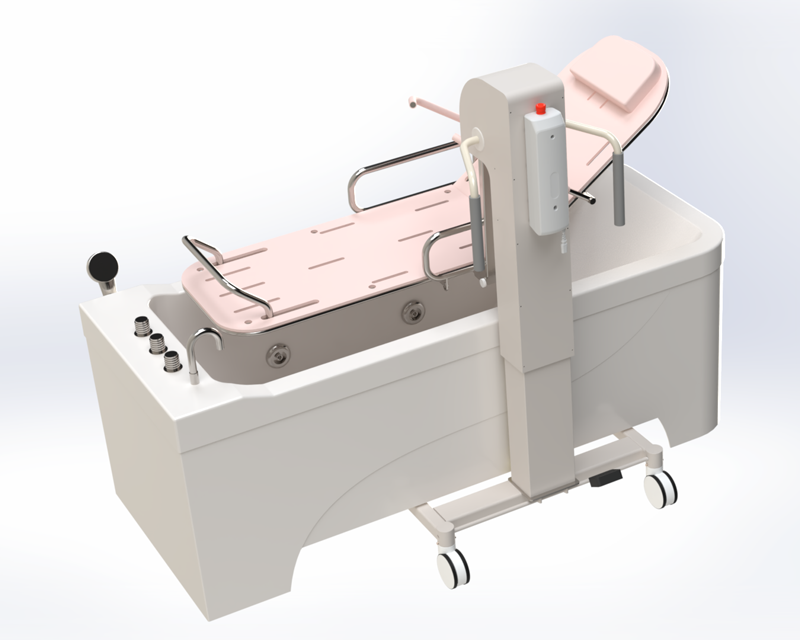 设备由移位升降推车和浸浴浴槽组成,可实现患者无障碍转运与洗浴。